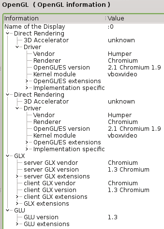 virtualbox-4.3_4.3.8-92456 - Host Debian 8 (Jessie) - Host GPU: NV w/ NV proprietary driver - Guest Debian 7 (Wheezy) - Mesa 8.0.5 LLVM: - Onscreen: OK - FBO: OK - FBO.MSAA: NO - PBuffer: OK - Bitmap: OK - 3D Accel (Chromium 1.9): - Onscreen: OK - FBO: NO - FBO.MSAA: NO - PBuffer: NO - Bitmap: NO Testing w/ Debian 8 (Jessie) now ..